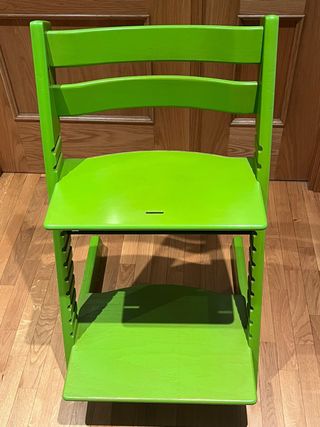 Preciosa silla evolutiva Stokke Tripp Trapp en color verde. Está en muy buen estado y lista para usar. Marcas propias del uso. - Ideal para niños y niñas. - Diseño icónico y atemporal. - Estructura de madera resistente.