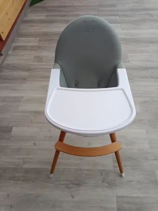 Trona para bebé con un diseño moderno y funcional. Combina patas de madera natural con un asiento gris. "Kinderkraft" - Bandeja extraíble. - Asiento ergonómico. - Patas de madera. - Posibilidad de hacerla silla pequeña.
