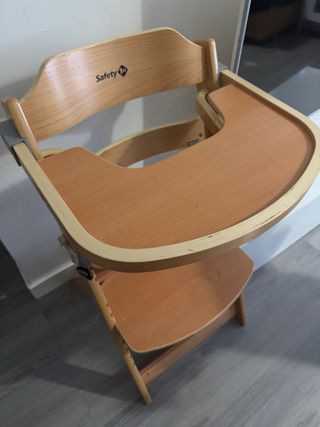 Trona de madera de la marca Safety 1st. Un asiento seguro y cómodo para los más pequeños. - Color madera. - Bandeja extraible. - Diseño ergonómico. algún signo de uso aunque la tenemos solo 5 meses