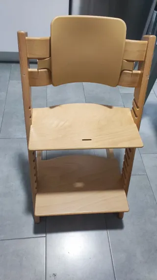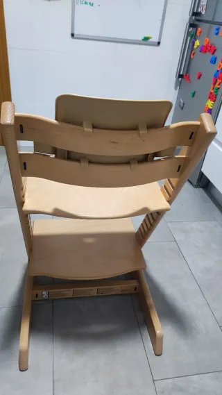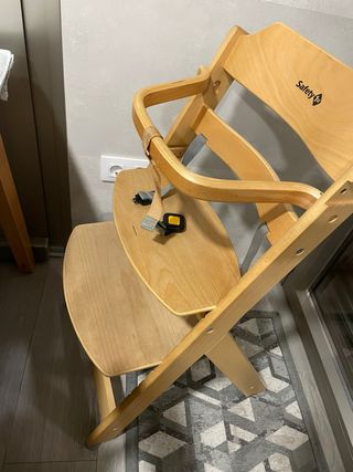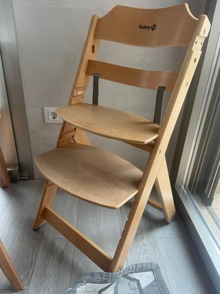 Trona de madera evolutiva, perfecta para acompañar el crecimiento del bebé. - Material: Madera. - Marca: Safety 1st. - Arnés de seguridad - Se puede ajustar al crecimiento del nino, lo hemos usado hasta los 5 años y podría seguir usándose.