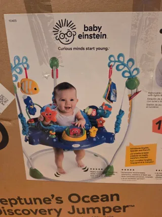 En su caja, practicamente nuevo. Saltador para bebés Baby Einstein, modelo Neptune's Ocean Discovery Jumper. Fomenta el aprendizaje temprano. - Introduce inglés, español y francés. - Estación de juego con luces y sonidos. - Juguetes interactivos.