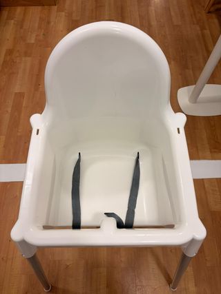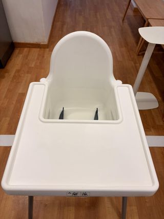¡La trona más práctica y vendida de IKEA! Ideal tanto para uso diario en casa como segunda trona para casa de los abuelos o de vacaciones, ya que se desmonta en segundos. Características principales: Estado: Muy bien cuidada, limpia y lista para usar. Incluye: Asiento blanco, bandeja extraíble y patas metálicas con topes de goma. Seguridad: Incluye el cinturón de seguridad original. Limpieza: Súper fácil de limpiar, basta con un paño húmedo (o incluso puedes meter el asiento bajo la ducha). Desmontaje: Las patas se quitan fácilmente presionando un botón, ocupando muy poco espacio para guardar o transportar en el coche.
