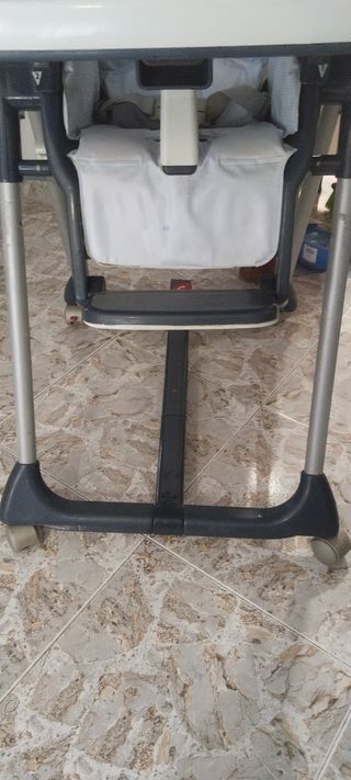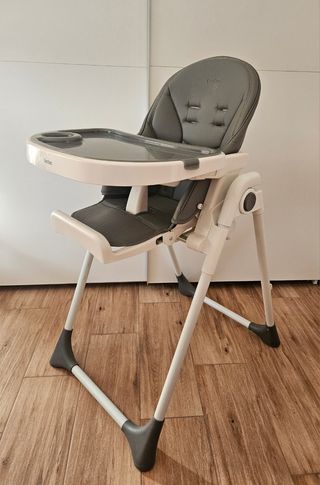 La trona ideal para tu bebé desde los 0 meses gracias a su reclinado y a la posibilidad de usarla como hamaca. Totalmente lavable, tengo en una bolsita todos los arnés lavados y están impecables. Puedes ponerla a varias alturas y sirve también de hamaca, super cómoda y recomendada. Sólo usada con un niño. - Estructura resistente y estable. - Bandeja extraíble para facilitar la limpieza. - Tapicería gris en buen estado. - Reposapiés incluido. Me costó 180€