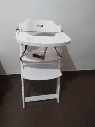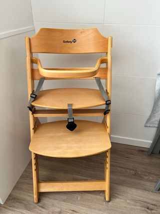 Preciosa trona de madera de la marca Safety 1st, en muy buen estado. - Estructura de madera. - Incluye arnés de seguridad. - REGALO colchoneta de la marca . - SIlla de madera EVOLUTIVA.