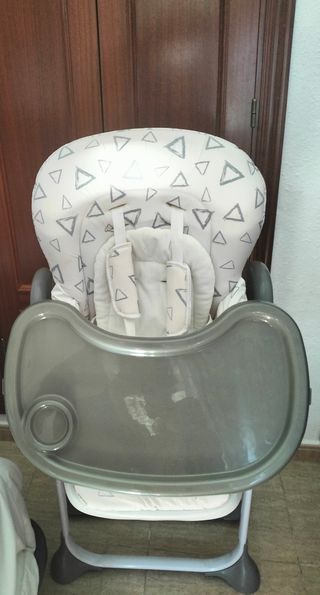 Cuatro posiciones de altura, reclinable, bandeja estraible, cierre plegable,fácil de quitar para lavar.....