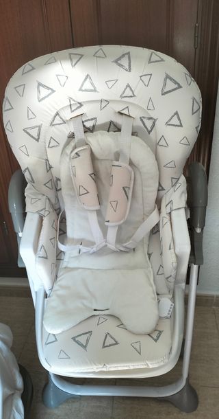 Trona evolutiva de la marca Cosatto, apta desde los 6 meses con múltiples posiciones, tanto de respaldo como de altura. El material de la silla es totalmente impermeable y desmontable. Tiene un arnés de 5 puntos de seguridad. Está como nueva, lo único que las correas del arnés están un poco desgastadas de lavarlas.