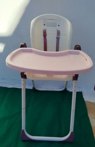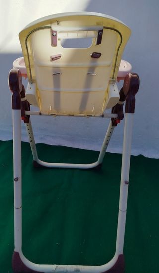 Dispone de un sistema de ajuste de anchura( hasta 8cm)del respaldo, que se adapta al crecimiento del bebé( desde los 0 meses hasta los 15 kg aprox). Respaldo reclinable en 4 posiciones. 8 posiciones en altura. Reposapiés ajustable en 3 posiciones y extraible.Cuenta con bandeja y cubre bandeja extraible. Compacta y plegable. peso :10,5 kg Se entrega totalmente limpia y sin desperfectos ya que estaba en una segunda residencia con apenas uso. Altura plegada :109 cm