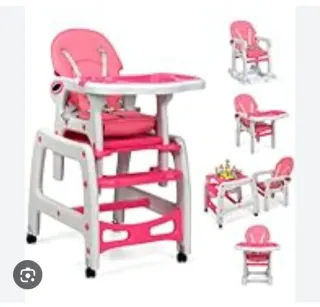 Práctica trona para bebé en color rosa, diseñada para adaptarse a las diferentes etapas de crecimiento. - Estructura robusta y segura. - Bandeja extraíble. - Asiento acolchado. - Ruedas para fácil movilidad.