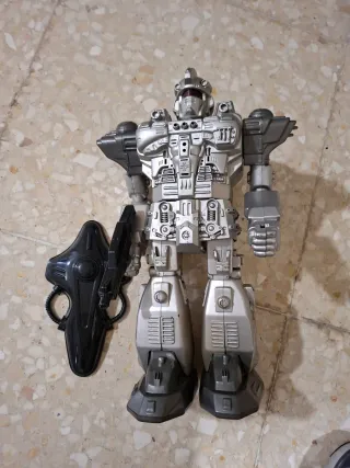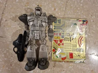 Robot DSI Ultima-Tron plateado con accesorios. - Incluye hoja de pegatinas a estrenar. - Arma negra acoplable.