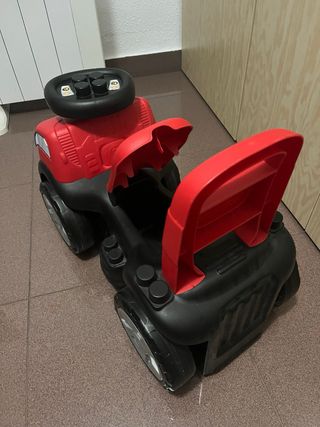 Divertido camión correpasillos para los más pequeños. Ideal para paseos y juegos. - Diseño de camión con cara sonriente. - Volante negro. - Asiento rojo con respaldo. - Almacenaje debajo del asiento.