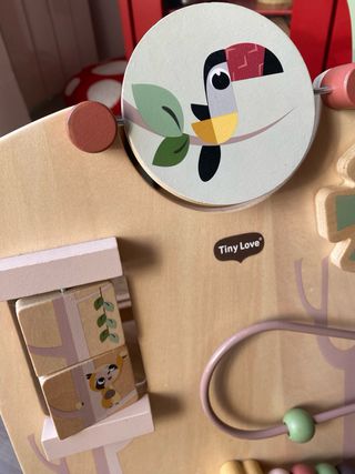 Andador de madera de la marca Tiny Love, ideal para los primeros pasos. En oerfecto estado. - Diseño con motivos de árboles y animales. - Incluye actividades interactivas como cuentas y bloques. - Ruedas para facilitar el movimiento. Tiny Love Andador Bebes Madera, 2-en-1 andador de actividades, 12 actividades interactivas, habilidades motoras, desarrollo cognitivo, diseño natural, más de 18 meses, Boho Chic