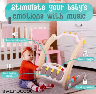 Andador para bebés, ideal para los primeros pasos. Se pliega para facilitar su almacenamiento. - Diseño colorido y alegre. - Asiento acolchado. - Juguete incluido en la barra frontal. - Estructura robusta y segura.