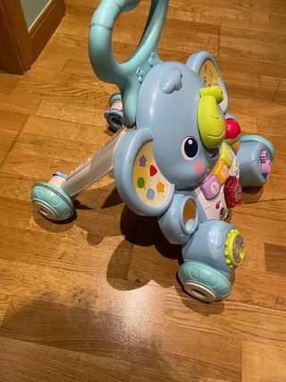 Andador para bebés con forma de elefante, ideal para ayudar a los más pequeños a dar sus primeros pasos. Es de color azul y está en buen estado. - Diseño adorable de elefante. - Incluye botones musicales y actividades interactivas. - Estructura resistente y segura.