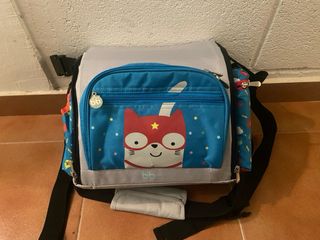 Práctica trona de viaje para bebés, ideal para llevar a todas partes. Su diseño es ligero y fácil de plegar. Marca Cotton Juice - Estampado de coches y estrellas. - Incluye cinturones de seguridad. - se puede llevar como bandolera - tiene bolsillo térmico en el lateral