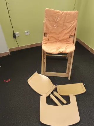 Trona de madera con diseño evolutivo. - Material: Madera. - Color: Natural. - En muy buen estado - Regulable en altura y desmontable