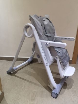 Trona Peg Perego Prima Pappa Follow Me en buen estado. Es cómoda y funcional para los más pequeños. - Bandeja extraíble. - Respaldo reclinable. - Altura regulable. - Ruedas para fácil movilidad. La trona Prima Pappa Zero3 está homologada desde el nacimiento hasta los tres años. Ya desde sus primeros días de vida, puedes utilizarla como una cómoda mecedora que luego se convertirá en una práctica trona cuando comience a descubrir el placer de la comida. Cuando es más grandecito, desmontas la bandeja y la transformas en un asiento como el de los mayores, tu niño podrá sentarse a la mesa con toda la familia y comer de manera autónoma