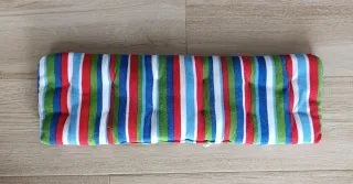 Cojín para trona Ikea con un diseño de rayas multicolor. Aporta comodidad y un toque de color. - Diseño de rayas verticales. - Colores: rojo, azul, verde y blanco. LA TRONA NO ESTÁ INCLUIDA