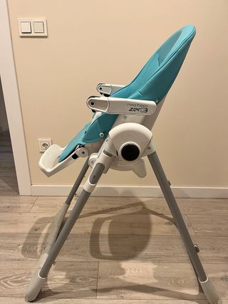 Trona Peg Perego Prima Pappa Zero3 en color azul. - Asiento acolchado. - Bandeja extraíble. - Arnés de seguridad de 5 puntos. - Estructura resistente. - Regulable en altura . La funda azul esta comprada de hace 5 meses.