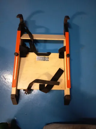Adaptador para silla de bebé, ideal para añadir seguridad y comodidad. - Estructura de madera. - Detalles en color naranja. - Incluye cintas de sujeción negras.