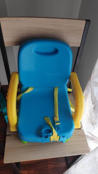 Trona portatil Tuc Tuc. Es ideal para transportar y se engancha a la silla, siendo un elevador comodo para los niños. se pliega totalmente y lleva un cordón para transportalo como si fuera un bolso.
