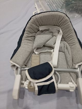 Trona balancín Ionelo Nilo, versátil y cómoda para tu bebé. - Diseño 2 en 1: trona y balancín. - Asiento acolchado. - Bandeja extraíble. - Estructura resistente. Se conecta a la luz con balanceo automático y música, también tiene usb para conectar tu propia música La vendo más barata porque tiene la funda pelada ( universales valen 12€)y le falta un ajuste del adorno de los muñecos que no es relevante porque se pone igual