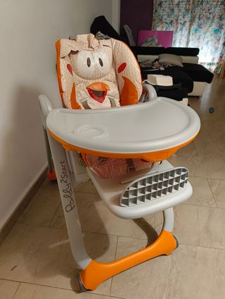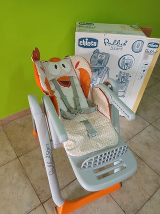 Trona para bebé. Modelo Chicco Polly 2. Poco uso. Está en buenas condiciones. Algo de desgaste del uso que se puede ver en las fotos. Este modelo no lleva la ruedas en las patas traseras. A partir de 0 meses. Se envía con las instrucciones y en su caja original.