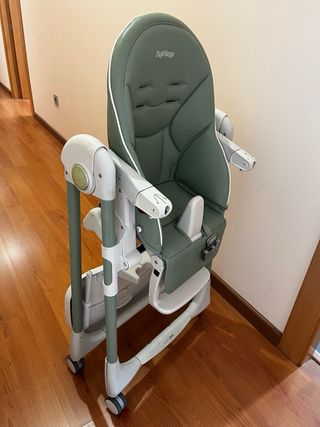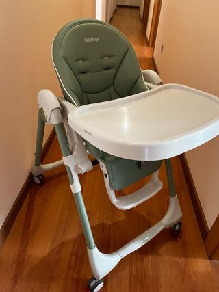 Trona evolutiva PegPerego Prima Pappa. Bandeja extraible, se pliega con facilidad, se reclina el respaldo hasta conseguir una posicion horizontal, tiene reposapiés el cual tambien se puede ajustar a la medida, lleva ruedas para un mejor transporte. Tambien lleva arneses para sujetar al bebé. Usada pero como nueva