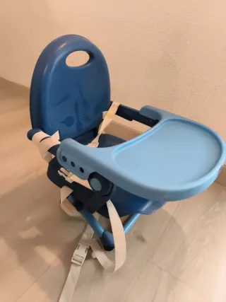Trona portátil de la marca Chicco, ideal para llevar a cualquier parte. Su diseño es compacto y fácil de montar. - Color azul. - Incluye cinturones de seguridad. - Bandeja extraíble.