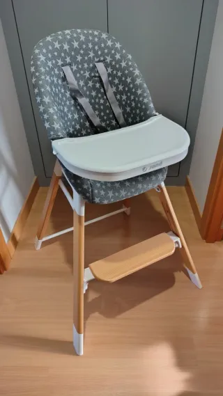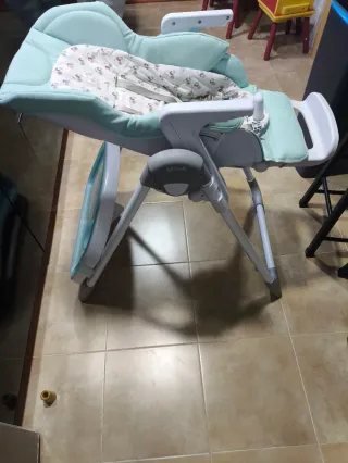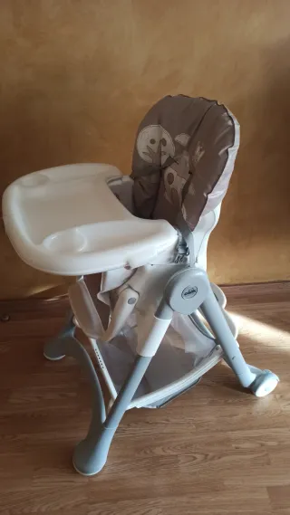 Trona en buen estado, con la posibilidad de convertirse en una mesa. - Diseño práctico y funcional. - Materiales resistentes.