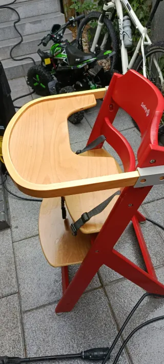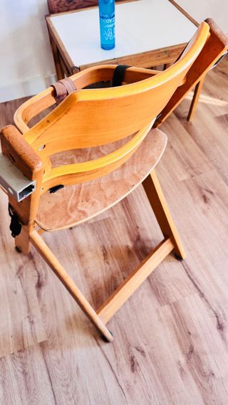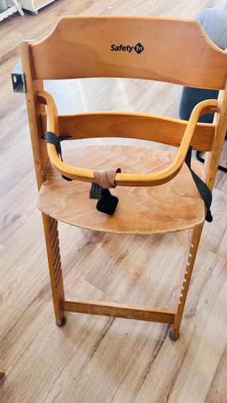 Silla evolutiva de madera de la marca Safety 1st. - Ideal para usar desde los 6 meses hasta los 11 años. - Diseño de madera natural. - Arnés de seguridad integrado. Esta usada pero perfecta para sacarla partido. Bandeja incluida