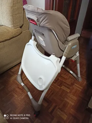 Trona Chicco Polly Progress en buen estado. - Asiento acolchado. - Bandeja extraíble. - Ruedas para facilitar el movimiento.