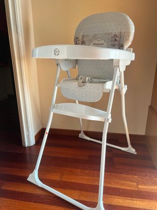Preciosa trona para bebés, ideal para las comidas familiares. Se encuentra en muy buen estado. - Plegable para facilitar su almacenamiento. - Bandeja extraíble para una fácil limpieza. - Arnés de seguridad para el bebé. - Estructura robusta y estable.