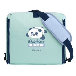 Trona portátil de la marca Saro, con un divertido diseño de Mr. Wonderful. - Estampado de panda. - Color verde menta. - Incluye asa para colgar. - Espacio de almacenaje interno