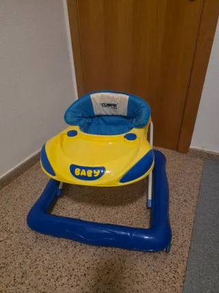 Tacatá para bebés en colores amarillo y azul. Cuenta con un asiento acolchado. - Estructura de plástico resistente. - Base ancha para mayor estabilidad. - Ruedas para facilitar el movimiento.