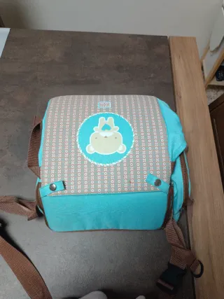 Práctica trona portátil marca Tuc Tuc, ideal para llevar a todas partes. - Compartimento para guardar cosas - Diseño con abejas y arcoíris - Tejido acolchado y lavable - Arnés de seguridad - Se acopla a cualquier silla con las correas ajustables - Se pliega fácilmente en forma de bolso con asa y bandolera ajustable para un transporte cómodo. - Embalaje original.
