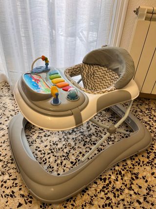 Caminador marca VTech ruedas con dos posiciones de velocidad, música y luces para entretener a tu bebé. Y tacata para bebes plegable, el panel hace música y se puede quitar.