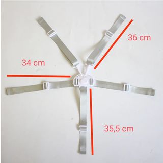 Arnés, Cinturón de Seguridad para asiento del cochecito de bebé, trona. El cinto es de nailon gris (2,5 cm de ancho) y los enganches de plástico. Medidas del largo máximo del cinto en la segunda foto, se pueden ajustar. Arnés Cinturón Cinto Correa Protección