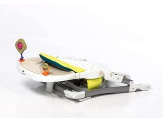 Trona portátil que se puede colocar sobre cualquier silla. Se pliega en un bolsito que tiene además cremalleras y hueco para poner una botella. Como nueva.