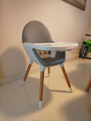 Trona bebé, silla madera y gris
