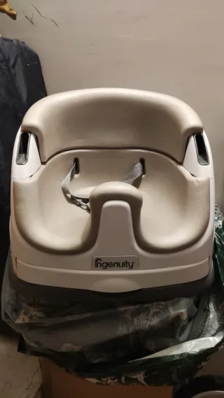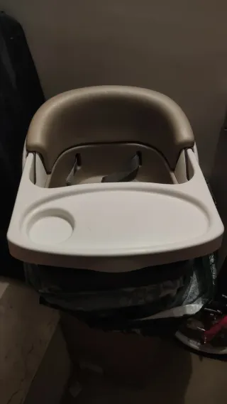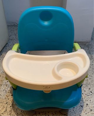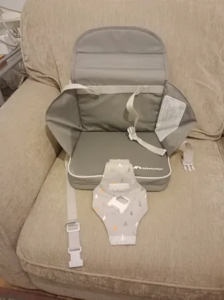 Se vende trona portátil para bebé como nueva. Es cómoda y fácil de transportar. - Ideal para viajes o restaurantes. - Se adapta a la mayoría de las sillas con anclajes laterales y trasero. - Incluye correas de seguridad y la base se infla y desinfla para que ocupe menos. - Tejido acolchado y suave.