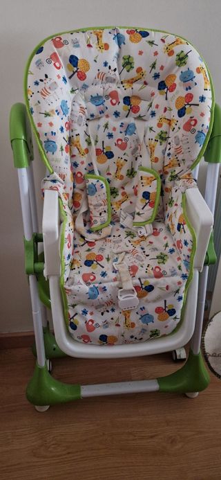 Trona de la marca Cam sin apenas uso en color verde menta. El material es lavable y se adapta a diferentes posiciones. Está en Madrid pero se puede enviar.