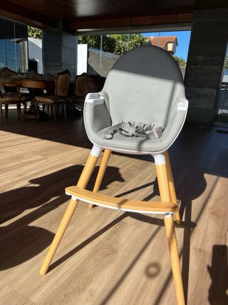 Trona de la marca Maxi-Cosi modelo Bene. Estructura de madera, evolutiva de 0 a 10 años. Se encuentra en perfecto estado. Color gris oscuro. Cuenta con todos los accesorios originales, adaptador para bebé y bandeja extraible. Se entrega con libro de instrucciones.