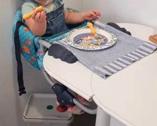 Trona de mesa para bebé, ideal para fijar a la mesa y que el pequeño coma cómodamente. - Diseño seguro y práctico. - Fácil de instalar y retirar. - Materiales resistentes.