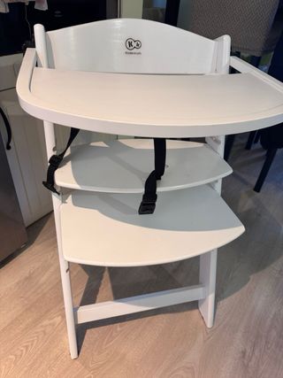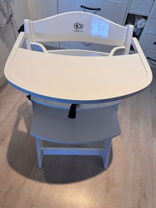 Trona Kinderkraft Enock de color blanco. Un asiento cómodo y seguro para los más pequeños. TIENE ALGÚN DESCORCHÓN DEL USO Y LIMPIARLA - Bandeja extraíble. - Reposapiés. - Estructura de madera
