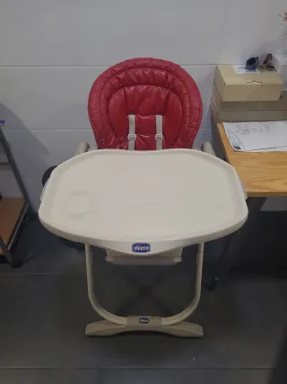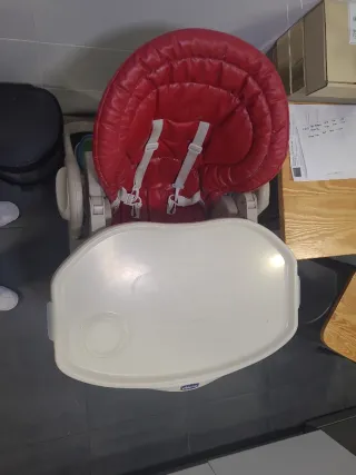 Se vende trona Chicco de color rojo. Está en buen estado, aunque tiene algunas señales de uso. - Plegable para facilitar su almacenamiento. - Incluye arnés de seguridad.