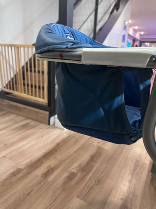 Trona portátil para llevar a todos los lados. En la parte trasera tiene una neverita/bolsa para llevar la comida