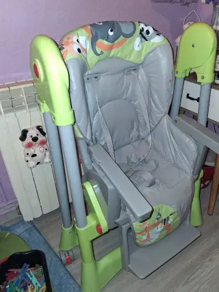 Preciosa silla trona de la marca Chicco, ideal para las comidas de tu bebé. Se encuentra en buen estado y lista para usar. - Diseño alegre y colorido con dibujos de animales. - Incluye bandeja extraíble. - Arnés de seguridad para el peque.