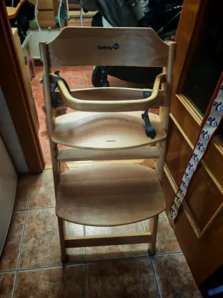 Trona de madera de la marca Safety 1st, ideal para que los más pequeños coman cómodamente. - Fabricada en madera. - Bandeja extraíble. - Arnés de seguridad.