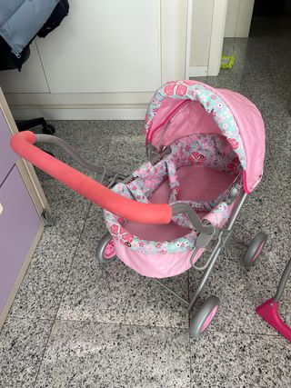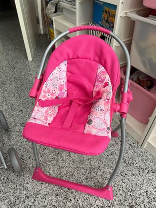 Conjunto de carrito de juguete y trona para muñecas, en color rosa con estampado floral. - Carrito con capota y asa acolchada. - Trona con bandeja. - Ruedas para fácil movilidad. - marca Chicco
