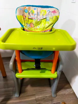 Se regala trona de la marca Jane. Se transforma en un conjunto de mesa y silla. Bastante usada y la funda tiene algunas manchas que no se van. Pero la estructura esta perfecta. La mesa tiene algunas pintadas de rotulador.